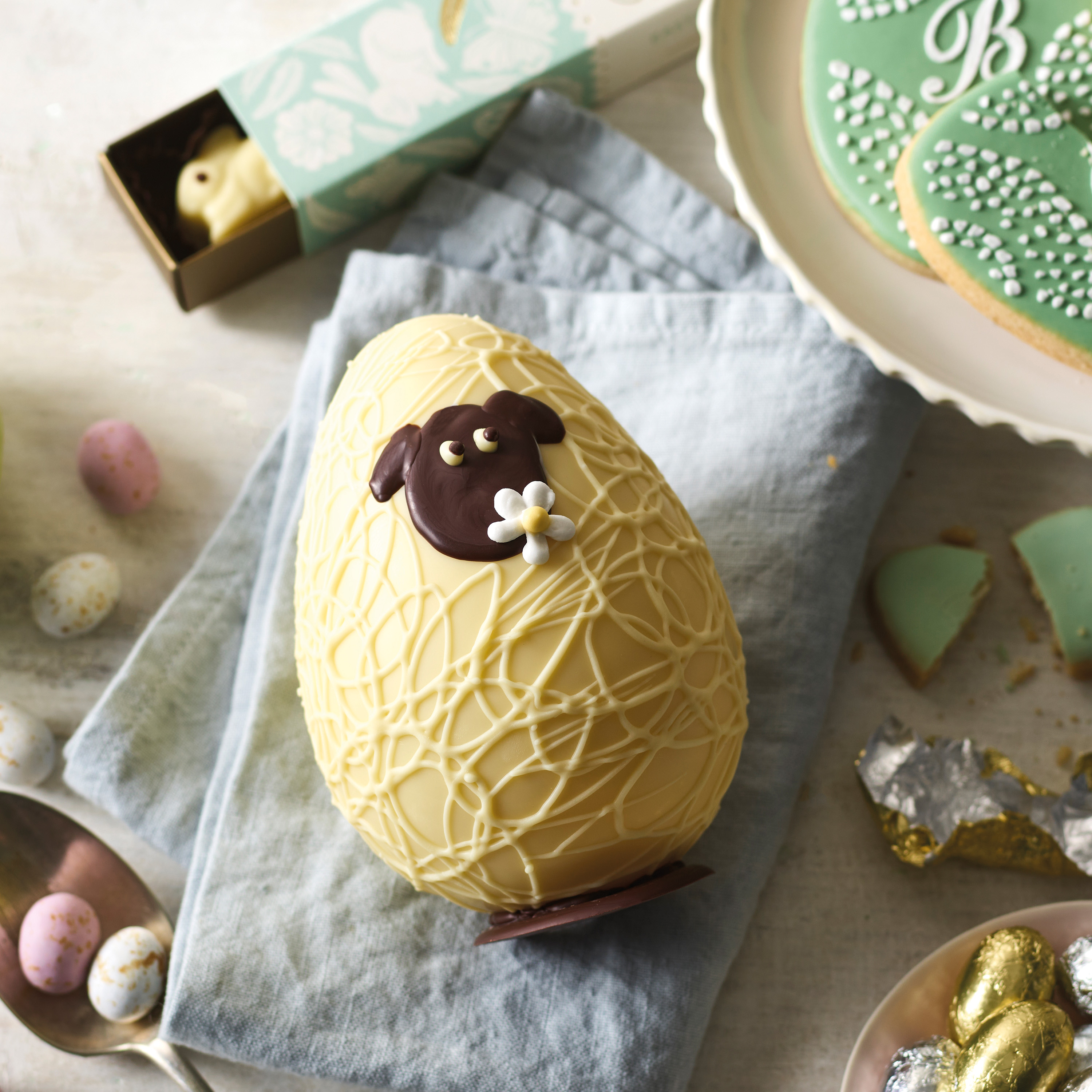 A thick white chocolate egg hand-decorated with a swirly white chocolate fleece, finished with a cute dark chocolate face and a hand-piped royal iced daisy. While a lot of white chocolate is overly sweet, this one is rich and creamy with the taste of real milk, made from generous amounts of luxurious cocoa butter, Swiss cream and milk. Jenny gets her name from the talented Betty’s Chocolatier, who created her – Jenny Mills, who has been making chocolates in their Craft Bakery for 21 years (and counting!). £19.95 https://www.bettys.co.uk/